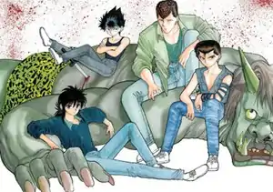 Kirishima (桐島, "Miyamoto" in the English anime), Okubo (大久保, Ōkubo) and Sawamura (沢村, "Komada" in the English anime) are Kazuma's friends and also allies of Yusuke Urameshi. Okubo's single mother, often ill, does not bring enough money into her household, so Okubo holds a job in order to support the household.[ch. 3] All three appear in the Sensui arc where they attend a Megallica concert with Kuwabara. On their way home, they are attacked by Kiyoshi Mitarai and nearly drown in one of his water-based creatures, but are saved by Kuwabara.[ch. 127] Afterwards, Kuwabara carries the three, along with Mitarai to Yusuke's apartment before passing out. After Kirishima, Okubo and Sawamura tell Kurama and the others about what happened, their memories are erased.[ch. 127] Kirishima came in ninth place in the series' first popularity poll.[14] He came in eleventh in the American Shonen Jump poll.[14]