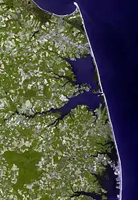 The Delaware Beaches are located along the Atlantic Ocean in the eastern part of Sussex County, Delaware, which is in the southern part of the state.[1] In addition to beaches along the ocean, the area offers many amenities, including restaurants, nightlife, fishing, golf courses, boardwalk areas, and tax-free shopping.[1][2] The beaches are popular tourist destinations for residents from the nearby areas of Washington, D.C., Baltimore, Wilmington, Philadelphia, South Jersey, and Hampton Roads.[2] Out of the 30 states with coastline, the Delaware Beaches ranked number 1 in water quality in 2011[3] and again in 2014.[4]