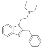 - Hunger A, Kebrle J, Rossi A, Hoffmann K (1960). "Benzimidazol-Derivate und verwandte Heterocyclen VI. Synthese von Phenyl-[1-aminoalkyl-benzimidazolyl-(2)]-essigsäure-estern und -amiden" [Benzimidazole derivatives and related Heterocycles VI. Synthesis of phenyl-[1-aminoalkyl-benzimidazolyl-(2)]-acetic acid esters and amides]. Helvetica Chimica Acta (in German). 43 (6): 1727–1733. doi:10.1002/hlca.19600430634.