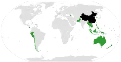 The People's Republic of China has bilateral trade agreements with the following blocs, countries, and its two special administrative regions:[13]