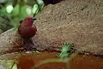 The estrildid finches are small passerine birds of the Old World tropics and Australasia. They are gregarious and often colonial seed eaters with short thick but pointed bills. They are all similar in structure and habits, but have wide variation in plumage colours and patterns.
