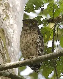 The frogmouths are a group of nocturnal birds related to the nightjars. They are named for their large flattened hooked bill and huge frog-like gape, which they use to take insects.