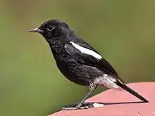 The estrildid finches are small passerine birds of the Old World tropics and Australasia. They are gregarious and often colonial seed eaters with short thick but pointed bills. They are all similar in structure and habits, but have wide variation in plumage colours and patterns.