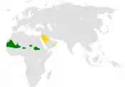 | Arabian ostrich | Struthio camelus ssp syriacus | X | Extinct | N/A | Formerly widespread in the Arabian peninsula | ![]() |