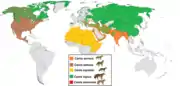 North America, Eurasia, and Africa; worldwide distribution (domestic dog)![]() |