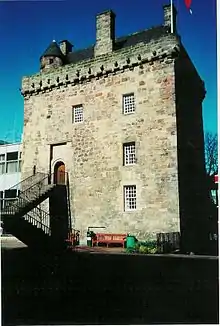 | Cramond Tower | Tower house | 15th century | NT189767 | This square-plan tower was built at the end of the 15th century for the Bishops of Dunkeld.[14] It later passed to the Douglas family then to James Inglis, who extended the tower and installed larger windows. In 1680 Cramond House was built nearby to replace the tower, which was subsequently abandoned, falling into ruin by the 19th century. It was restored as a home in 1979–1981 and remains a private residence.[15] |