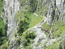 As of 2018, there are 843 caves known in the Polish Tatra Mountains with the total length exceeding 134 km.[1] They are within Tatra National Park. All the prominent ones are limestone karst caves of the Western Tatras, but there are also some tectonic caves. The largest and deepest caves of the Tatras (and of Poland) are located in the Czerwone Wierchy and Kominiarski Wierch massifs. Another highly promising region, the massif of Giewont, is largely unexplored due to its strict nature conservation status.[2]