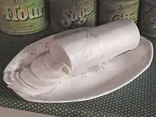 The Montafoner Sauerkäse (dialect: Sura Kees or in the Walgau and Rhine Valley Sura Käs) is a cheese made of soured-milk and has its origins in the Vorarlberger Montafon. Sour milk cheese is a lean cheese, so its fat content is very low. The protein content, however, does not suffer from fat loss due to the cream sabot. It is known in Vorarlberg since the 12th century and is similar to the Tyrolean grey cheese.[20] | |
