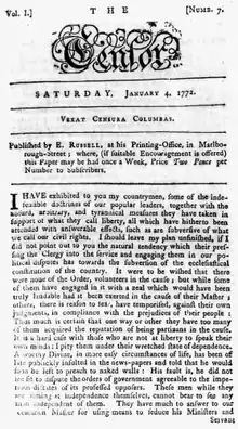 - "Eighteenth-Century American Newspapers in the Library of Congress: Massachusetts". Library of Congress. Retrieved 2010-10-20.