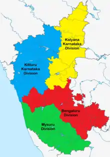 | Kitturu Karnataka Division | Bengaluru Division | Kalyana Karnataka Division | Mysuru Division |