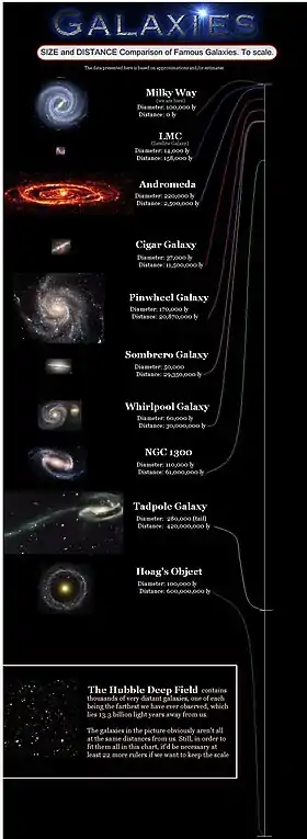 - "How big are galaxies". Phys org.