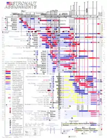 A chart showing U.S. astronaut assignments during the 1970s as graduated from the Mercury and Gemini programs.