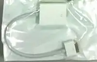 | Apple Digital AV Adapter | ![]() | Released with iPad 2 and mirrors video output. This adapter allows the user to mirror anything on the iPad's (iPad 2 or later) screen to a HDTV or any other HDMI-compatible display, in up to 1080p, so that whatever the iPad's user does is viewable to the audience watching on the larger HDMI-compatible display. The Apple Digital AV Adapter connects to the iPad 2 or later or iPad 2 Dock via the 30-pin dock connector, whilst the other end has two connections; one is a 30-pin dock connector to charge/power the device whilst being used, the other is a HDMI-out for connecting to any HDMI-compatible display using an HDMI cable. | iPad (1st generation) | [5][8] |