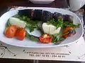 Skewers consisting of pork, chicken or lamb that is barbecued.[13][14] Pictured is a souvlaki platter. |