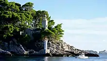 | Grebeni Lighthouse | ![]() | Islet near Dubrovnik 42.651546°N 18.047887°E | 1872 | 13 m (43 ft) | 27 m (89 ft) | 10 nmi (19 km) | 5 |