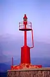 | Diga del Marzocco Lighthouse | ![]() | 1917 | Livorno 43°33′28.0″N 10°17′26.49″E | Fl (3) R 10s. | 13 metres (43 ft) | 7896 | E1360 | 7 |