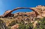 | 23 | ![]() | Wrather Arch | United States, Arizona, Wrather Canyon | 54.9 | 180 | NABS states that the span cannot be more than 180 ft (54.9 m) based on a related measurement made in 2008, though the span has not yet been measured precisely according to NABS standards. An earlier non-NABS estimate was 246 ft (75.0 m).[28] |
