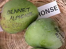 The following is a list of some prominent mango cultivars. Worldwide, hundreds of mango cultivars are known, with over 1000 varieties in India.[1]