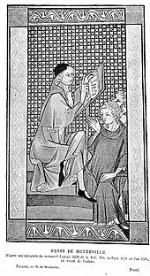 Medieval miniature depicting Henri de Mondeville, from an illuminated manuscript of La Chirurgie (14th century)[25]
