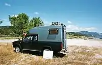 A truck camper is a living space unit that is temporarily mounted into the bed of a pickup truck and secured against any tipping or wobbling while the truck is in motion. Great care must be taken in matching the weight and center balance point of the truck camper with the capabilities of the pickup truck itself in order to maintain safe handling of the vehicle while driving. Truck campers are much favored by those who do not wish to own a motorhome or trailer for only part-time use when the need for a truck is otherwise present.