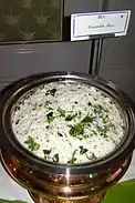 India | Simple preparations are a mixture of boiled rice and yogurt. More complex variations also exist. |