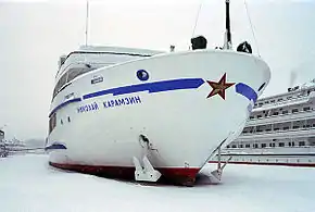 | Aleksandr Suvorov | ![]() | 1981 | 135.75 m (445 ft) | 400 | Vodohod | Valerian Kuybyshev / 92-016 | Nizhny Novgorod | RRR 140661 | disaster on 5 June 1983, collision with Ulyanovsk railway bridge on the Volga river[2] | |