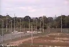 Matheson Boulevard is a mid-concession road built in modern times and follows a gradual diagonal course. It runs east from Terry Fox Way to Renforth Drive and has a brief 350 metre (0.2 mile) extension into Toronto via an overpass to meet Eglinton Ave.[4] It was originally an L-shaped side street centred around Dixie Road, east of which it turned south. It was later widened and extended in both directions, with the eastern section through the Airport Corporate Centre separated from the western section until it was bridged over the Etobicoke Creek. The extension resulted in the short north–south section being bypassed, though it was not renamed, and was itself extended south to meet Eglinton. However, this is technically not a name duplication, as the main section of the street has "East" and "West" designations, while the bypassed portion does not.