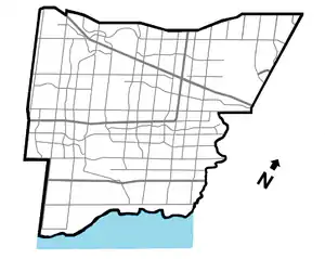 Lake Ontario — north city limits (continues north into Brampton) | ||