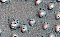 Rootless cones on Mars – due to lava flows interacting with water (MRO; January 4, 2013)