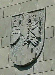 Coat of arms of the town of Anröchte made of Anröchte Stone