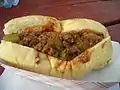 | Chipped beef | United States (Mid-Atlantic region and military cuisine) | Sandwich prepared with thinly sliced or pressed salted and dried beef. Some chipped beef is smoked to add flavor. | |