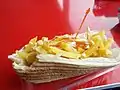 | Tripleta[59][60][61] | Puerto Rico | There are numerous variations of this sandwich, but all include three kinds of grilled meat – usually beef, pork, and chicken – on toasted pan de agua (a Puerto Rican bread similar to Italian bread), generally topped with lettuce, onion, tomato, mayonnaise, ketchup, and shoestring potatoes. | |