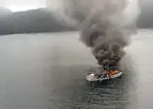 | Hazel Louise | While anchored in Nakwasina Passage (57.2494°N 135.4522°W) near the northern end of Halleck Island (57.2217°N 135.4475°W) in Southeast Alaska north of Sitka, Alaska, the 32-gross ton, 55-foot (16.8 m) fishing vessel suffered one or more explosions, burned to the waterline, and sank. The only person aboard survived.[1] |