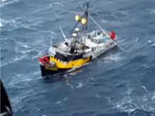 | Illusion | The 42-foot (12.8 m) fishing vessel sank in Makushin Bay (53°44′N 167°00′W) on the coast of Unalaska Island in the Aleutian Islands. A United States Coast Guard helicopter rescued her crew of four from a life raft.[9] |
