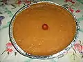 Most often refers to a dessert, but can also be a savory dish. Depending on its ingredients such a pudding may be served as a part of the main course or as a dessert. | |