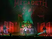 Four American bands, Anthrax, Megadeth, Metallica, and Slayer, are credited with popularizing the genre, earning them the title of the "Big Four of Thrash".[4][5] In Germany, Destruction, Kreator, Sodom, and Tankard, led the Teutonic thrash metal scene, garnering the nickname "The Big Four of Teutonic Thrash".[6][7] The Clash of the Titans tour, which featured Megadeth, Slayer, Anthrax, Testament, and Suicidal Tendencies, is considered to be the genre's pinnacle, after which thrash metal saw a decline in popularity throughout the 1990s.[8] Thrash metal has seen a resurgence in recent times, with many of the older bands returning to their roots with their new releases.[9] A new generation of thrash metal bands emerged in the early 2000s, drawing lyrical and visual inspiration from the older groups.[10][11]