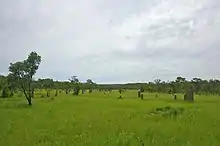 The magnetic termite mounds are a popular tourist attraction. These wedge-shaped mounds are aligned in a north–south direction as a response to the environment. The termites which build them feed on grass roots and other plant debris found in plains which are seasonally flooded. Therefore, the termites are forced to remain above the water, in the mound. The alignment of the mound acts as a temperature regulator, and allows the temperature to remain stable.