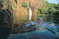 Tjaetaba Falls is a drop along Greenant Creek, one of the smaller systems in the park. These falls and the area below them is an Aboriginal sacred site, and visitors are requested to swim only above the falls.