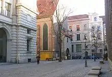 The Salvatorkirche is located at the Salvatorplatz. The cemetery surrounding the church was converted into the market square in the 18th century. Through the decision of the Munich magistrate, a school was built there, the market lost its place and was integrated into the ground floor of the new building. The market operation was stopped in 1906 and the building was completely converted to the school.