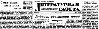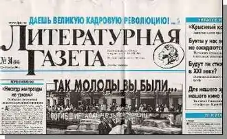 Literaturnaya Gazeta (Russian: «Литературная Газета», Literary Newspaper) is a weekly cultural and political newspaper published in Russia and the Soviet Union. It was published for two periods in the 19th century, and was revived in 1929.