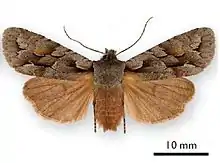Lithophane is a genus of moths of the family Noctuidae. They spend the winter as adults. Some species are capable of feeding on other caterpillars or on sawfly larvae, which is rather uncommon among Lepidoptera.[2]