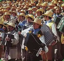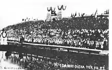The Lithuania Song Festival (also called The Song Celebration) is a massive traditional song and dance festival.[1] Since regaining the Independence in 1990, the event has gained the status of the national celebration. The most recent event took place between 30 June and 6 July 2018. The 2018 edition of the Song Celebration was dedicated to the Centenary of the Restoration of the independent state of Lithuania and took place in Kaunas and Vilnius.[2] The main event has been hosted in Vingis Park in Vilnius.