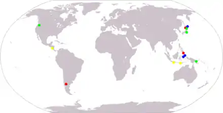 | Usu | 1663 | Japan | 3 | 6 | 2.5 km3 rhyolitic pumice fall deposited in the east reaching about 1 m thick in Shiraoi coast.[13] | Stratovolcano |