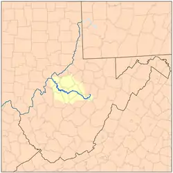 The Little Kanawha River is a tributary of the Ohio River, 169 mi (269 km) long,[2] in western West Virginia in the United States. Via the Ohio, it is part of the watershed of the Mississippi River, draining an area of 2,320 mi² (6,009 km²)[3] on the unglaciated portion of the Allegheny Plateau. It served as an important commercial water route in the early history of West Virginia, particularly in the logging and petroleum industries.[2][4]