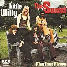 "Little Willy" is a song written by songwriters Nicky Chinn and Mike Chapman and performed by the British glam rock band The Sweet, released in 1972 as a non-album single in the UK, peaking at #4 in the best seller charts. It was released in the US in September 1972[6] and also appeared on their US debut album The Sweet and became their biggest hit in the US, reaching #3 on the Billboard Hot 100.[7] Billboard ranked it as the #18 song for 1973.