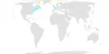 It breeds on islands in the high Arctic. There are two subspecies: A. a. alle breeds in Greenland, Novaya Zemlya and Svalbard, and A. a. polaris on Franz Josef Land. A small number of individuals breed on Little Diomede Island in the Bering Strait with additional breeding individuals thought to occur on King Island, St. Lawrence Island, St. Matthew Island and the Pribilof Islands in the Bering Sea.[6]