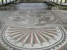 It was rediscovered in 1976 and the mosaic fully restored by 1980.[3] Excavations of the rest of the site continued under the direction of Bryn Walters till 1991 and the mosaic was protected by a roof in 2000.