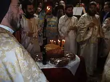 The Lity or Litiyá (Greek: Λιτή(Liti), from litomai, "a fervent prayer")[1] is a festive religious procession, followed by intercessions, which augments great vespers (or, a few times a year, great compline) in the Eastern Orthodox and Byzantine Catholic churches on important feast days (and, at least according to the written rubrics, any time there is an all-night vigil[2]). Following a lity is another liturgical action, an artoklasia, and either of these terms may be used to describe both liturgical actions collectively.