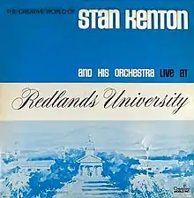 Live at Redlands University is a double live album by American jazz musician Stan Kenton and his orchestra, released in late 1970 by Creative World Records. It was the initial release on Kenton's newly formed record company after he broke his relationship with Capitol Records. Recording for the album took place in Southern California at Redlands University in August of 1970.
