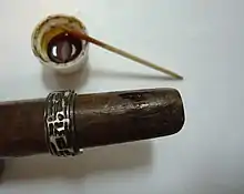 Liver of sulfur is a poorly defined mixture of potassium sulfide, potassium polysulfide, potassium thiosulfate, and likely potassium bisulfide. Synonyms include hepar sulfuris, sulfur, sulfurated potash and sulfurated potassa. There are two distinct varieties: "potassic liver of sulfur" and "ammoniacal liver of sulfur".[1]